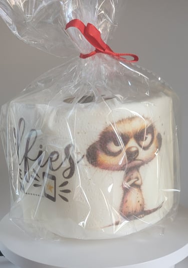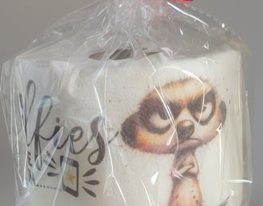 Discover our humorous creations like our therapeutic rolls of (toilet paper)